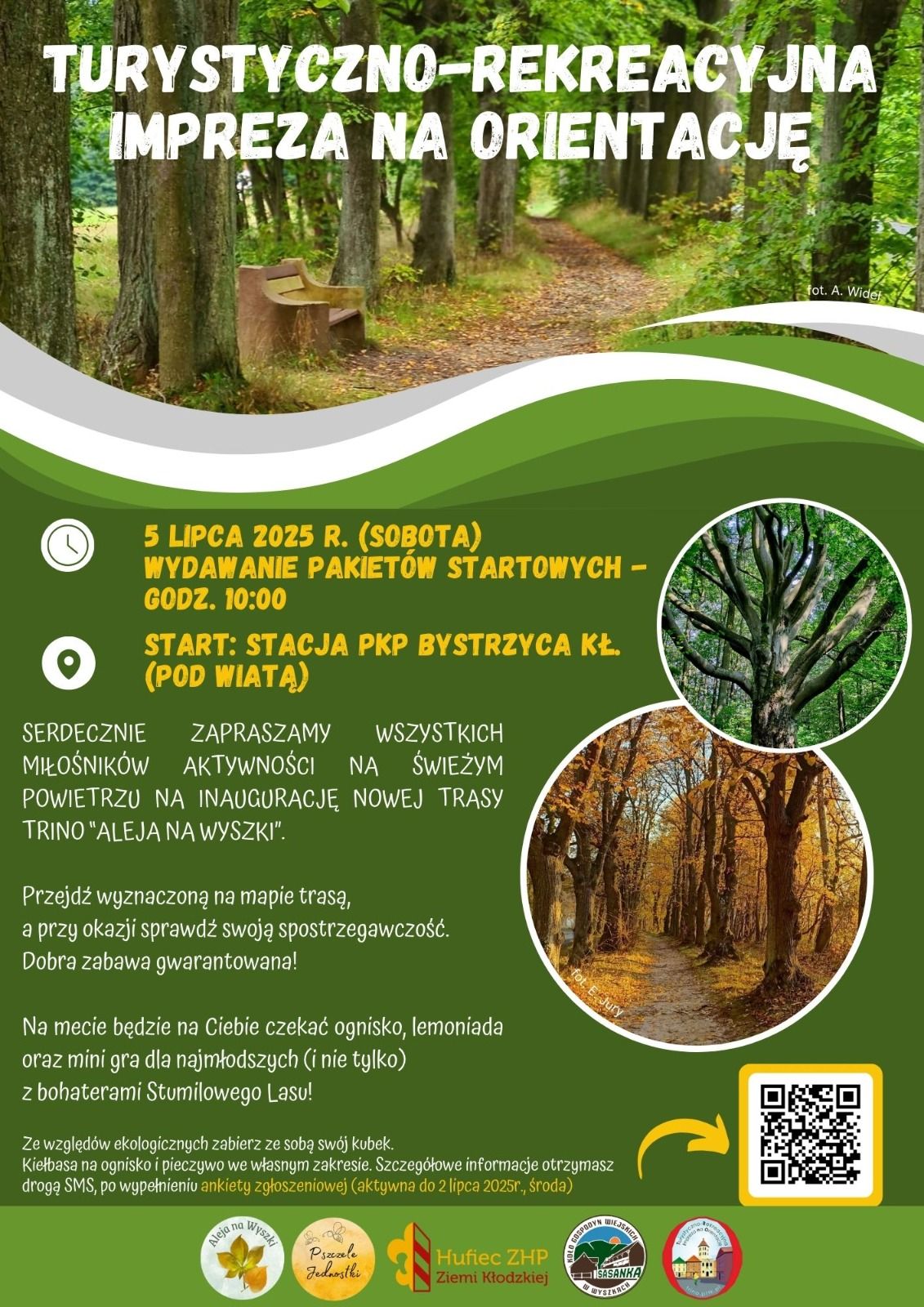 Kolejna trasa TRInO w Bystrzycy Kłodzkiej będzie miała premierę w pierwszą sobotę lipca. Ta trasa jest tylko częściowo miejska i prowadzi w Góry Bystrzyckie malowniczą Aleją na Wyszki (od niej otrzymała nazwę). Udział w wydarzeniu jest bezpłatny, ale konieczne jest zgłoszenie, aby można było przygotować odpowiednią ilość pakietów startowych, które będą wydawane na peronie stacji kolejowej. Obejrzyj plakat i wypełnij formularz zgłoszeniowy: https://forms.office.com/e/k2tZbmbn5M